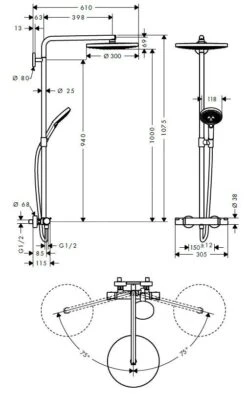 Hansgrohe Raindance E – Conjunto De Ducha 300, Con Termostato ShowerSelect Empotrado, Cromo 27952000