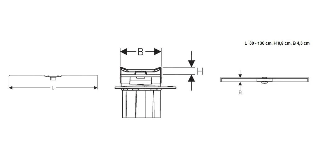 - canaleta de ducha ajustable en altura, inclinación y desalineación
