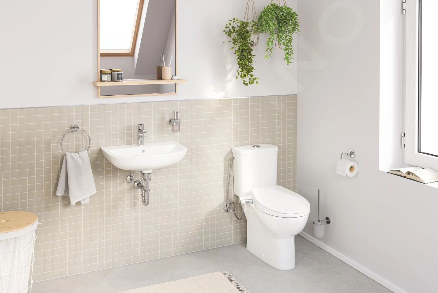 Este WC GROHE Bau Ceramic de pie presenta un aspecto elegante y minimalista y un equipamiento tecnológico ideal para elevar el nivel estético y funcional de cualquier baño, ya sea como renovación parcial o completa. El WC es con una construcción de taza sin borde de vitrocerámica en diseño de color Alpine White, que impide de manera exitosa el crecimiento y acumulación de bacterias. Al mismo tiempo es garantía de mantenimiento poco exigente y descarga más eficiente. Fabricado con codo de desagüe vertical, el volumen de descarga es de 6/3 litros. Al elegir la cerámica sanitaria de GROHE, podrás beneficiarte del conocimiento del experto mundial en grifería, GROHE, y de la experiencia de más de un siglo y los conocimientos tecnológicos del fabricante japonés LIXIL, líder en tecnología de superficies. GROHE Bau Ceramics: diseño innovador e calidad versátil en todo baño.