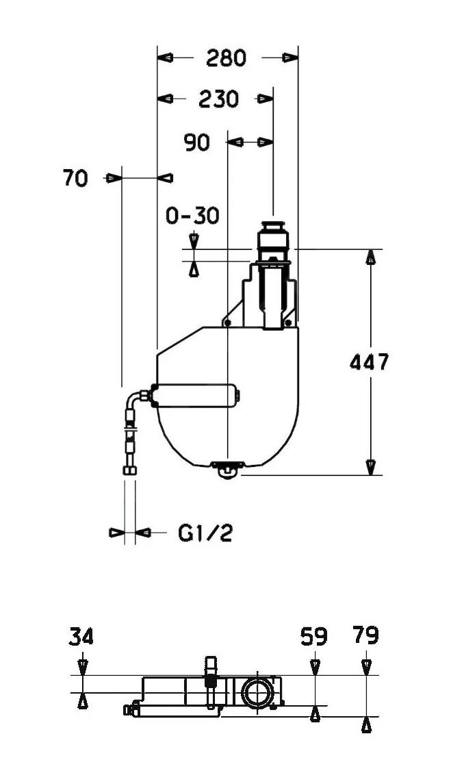 - instalación separada en azulejos, el orificio de revisión debe ser creado durante la instalación