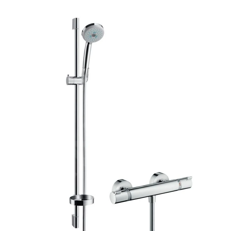 Este conjunto de alta calidad Hansgrohe Combi ofrece un fantástico placer de ducha. La ducha ergonómica Croma 100 Multi es circular, plana y fácil de combinar. De la alcachofa de ducha de 100 mm de diámetro salen tres tipos de chorro de agua.