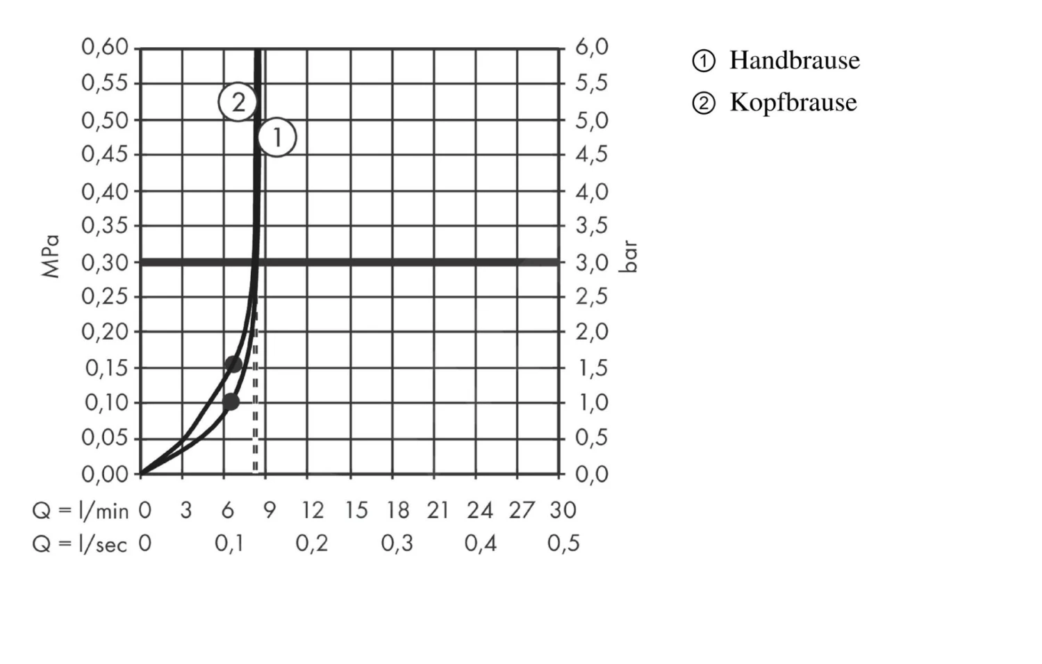 - caudal a 0,3 MPa: 16 l/min