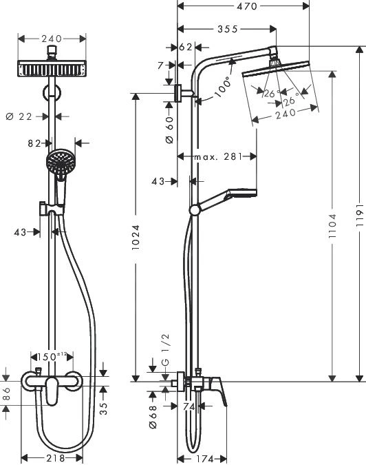 Conjunto de ducha Crometta E Showerpipe 240, 1jet