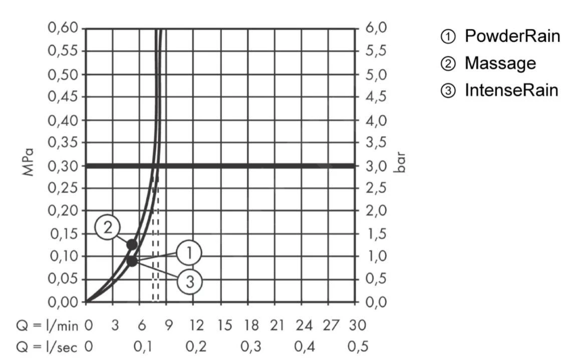 - chorros de ducha: PowderRain, IntenseRain, chorro de masaje