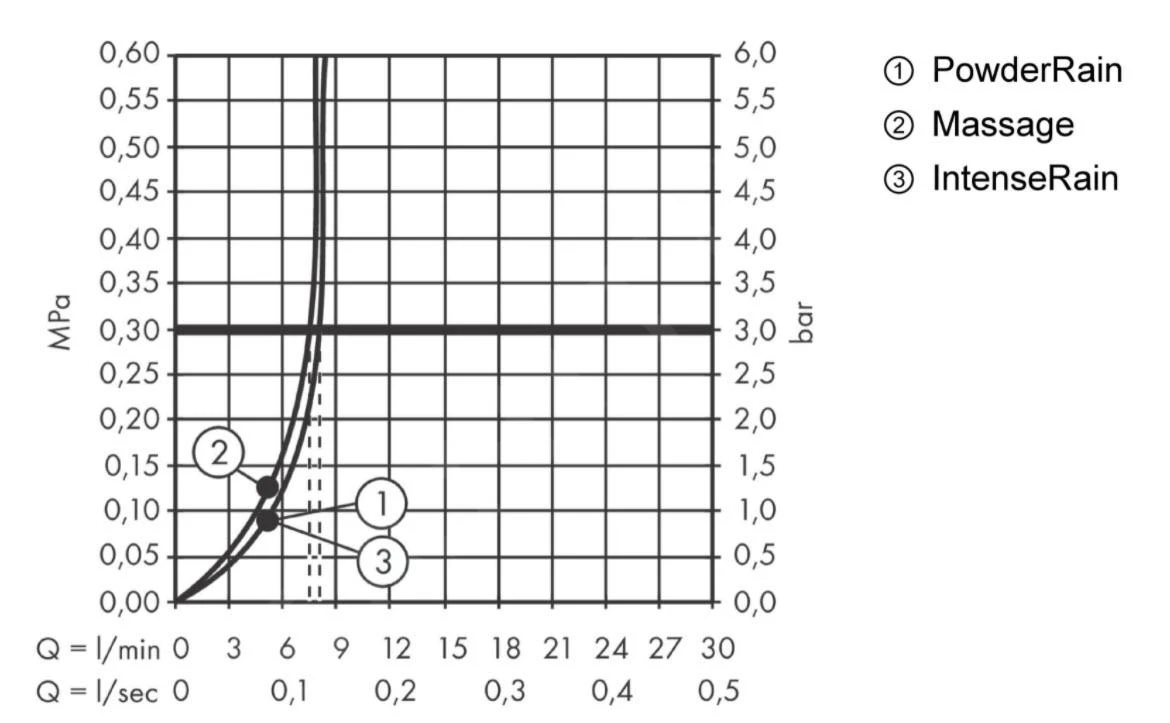 - chorros de ducha: PowderRain, IntenseRain, chorro de masaje