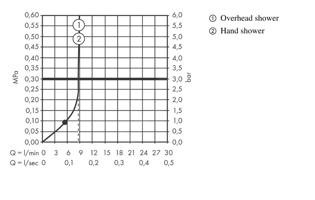 - caudal máximo a 0,3 MPa: 9,7 l/ min