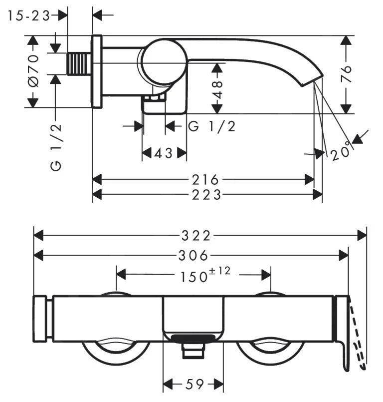 Original grifo de bañera de pared en un elegante acabado cromado. Esto es el verdadero lujo. El grifo de bañera hansgrohe Vivenis te dejará literalmente sin aliento. Está magníficamente hecho y es sofisticado en cada detalle. El cuerpo cilíndrico y el caño de diseño inteligente hacen de este grifo de bañera un producto precioso. La grifería está equipada con un botón Select, con el que se puede cambiar entre el caño de la bañera y la teleducha. Hansgrohe Vivenis te conquistará con su exclusivo WaterfallStream, que se asemeja a una cascada. El paso de este mezclador de bañera mide 150 mm. Por el grifo fluyen 19,4 litros de agua por minuto a una presión de 3 bar. Este grifo de baño es un verdadero éxito para Hansgrohe.
