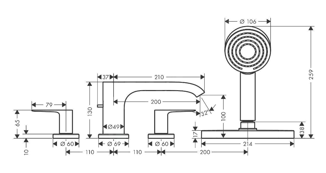 - anchura del borde de bañera: min. 100 mm