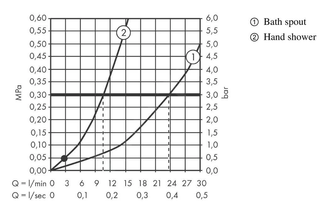 - caudal de ducha: 9,5 l/min (presión a 3 bares)