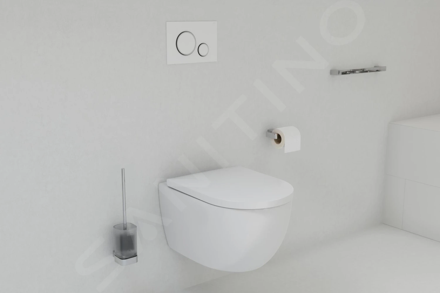- el pulsador de descarga sobresale mínimamente por encima del revestimiento gracias a un grosor de sólo 5,5 mm