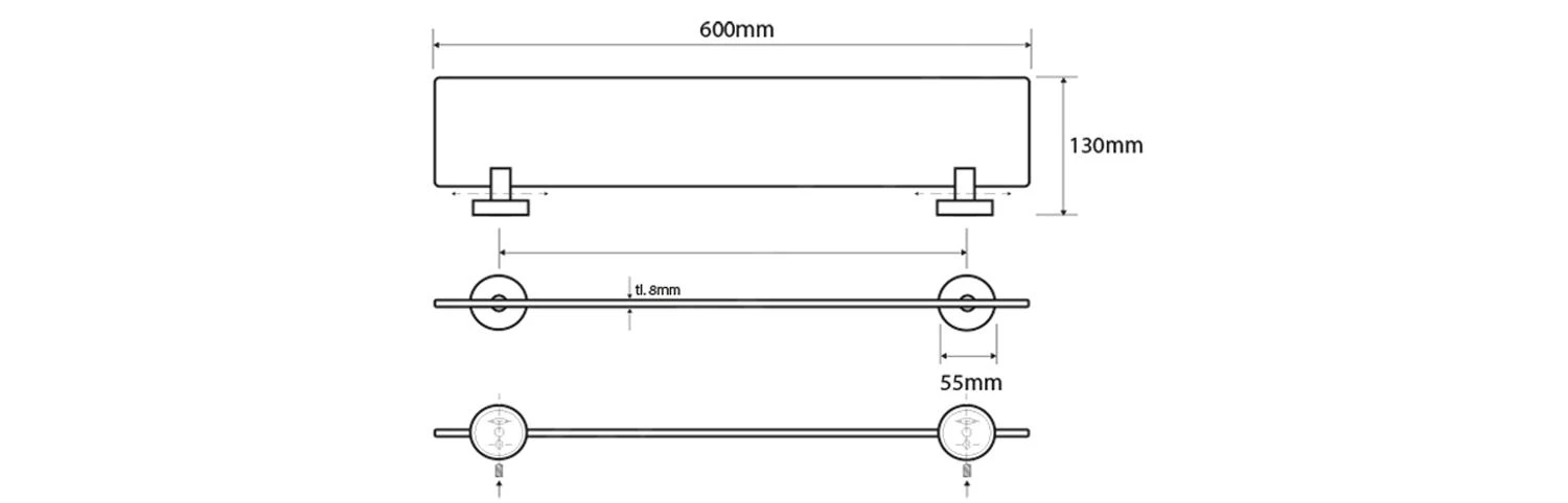 Estante de cristal X-STEEL 600mm, acero inoxidable cepillado