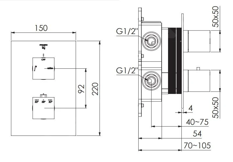 Grifo empotrado termostático de ducha, sin cuerpo de montaje